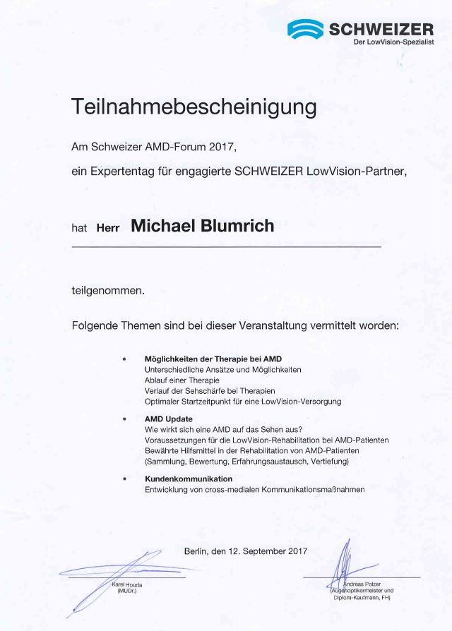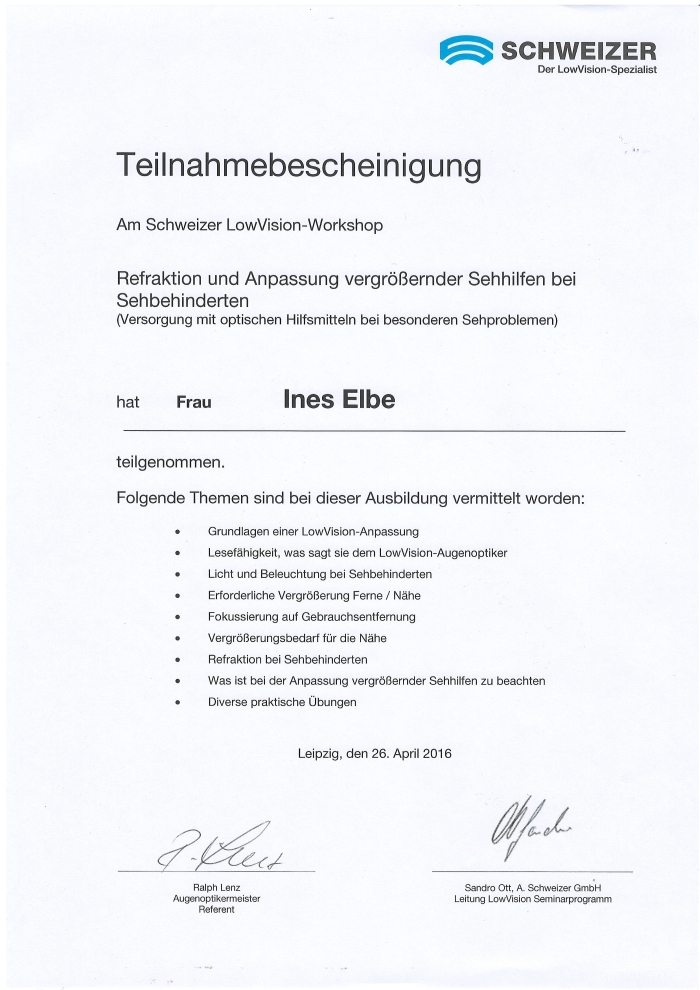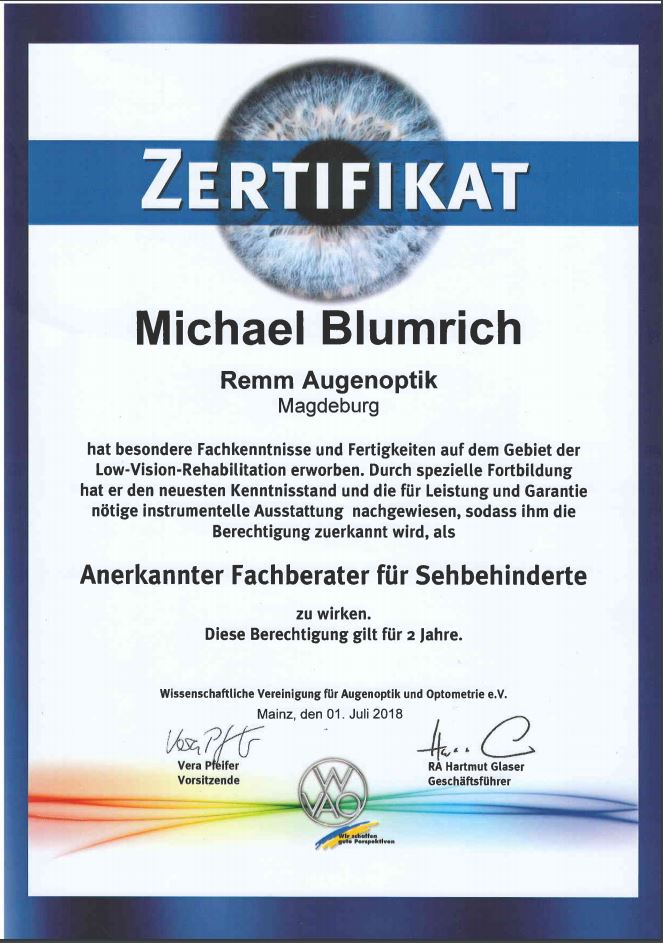 Anerkannter Fachberater für vergrößernde Sehhilfen
