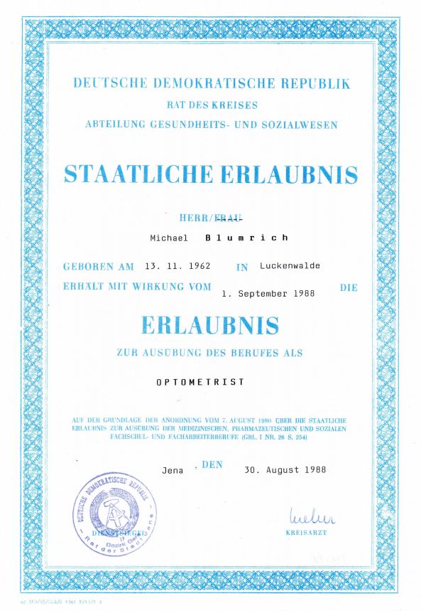 Michael Blumrich – Augenoptikermeister und Optometrist